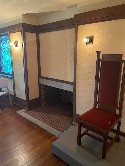 This is the angled bay window of the second floor living room. The Robie house underwent an extensive $10.5 million exterior restorations in 2019 and a $3.5 million dollar interior restoration. Current restoration is being complete in the kitchen, so that area was off limits.